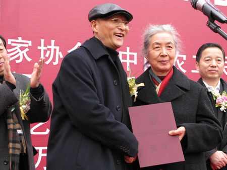 中国美术家协会主席刘大为为建设部原副部长宋春华颁发中国雕塑突出贡献奖